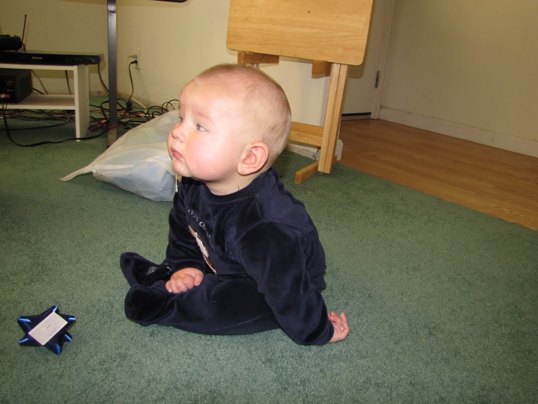 Jacob gave us another gift of sitting up for the first time unassisted. 5 months old and he is so big already.