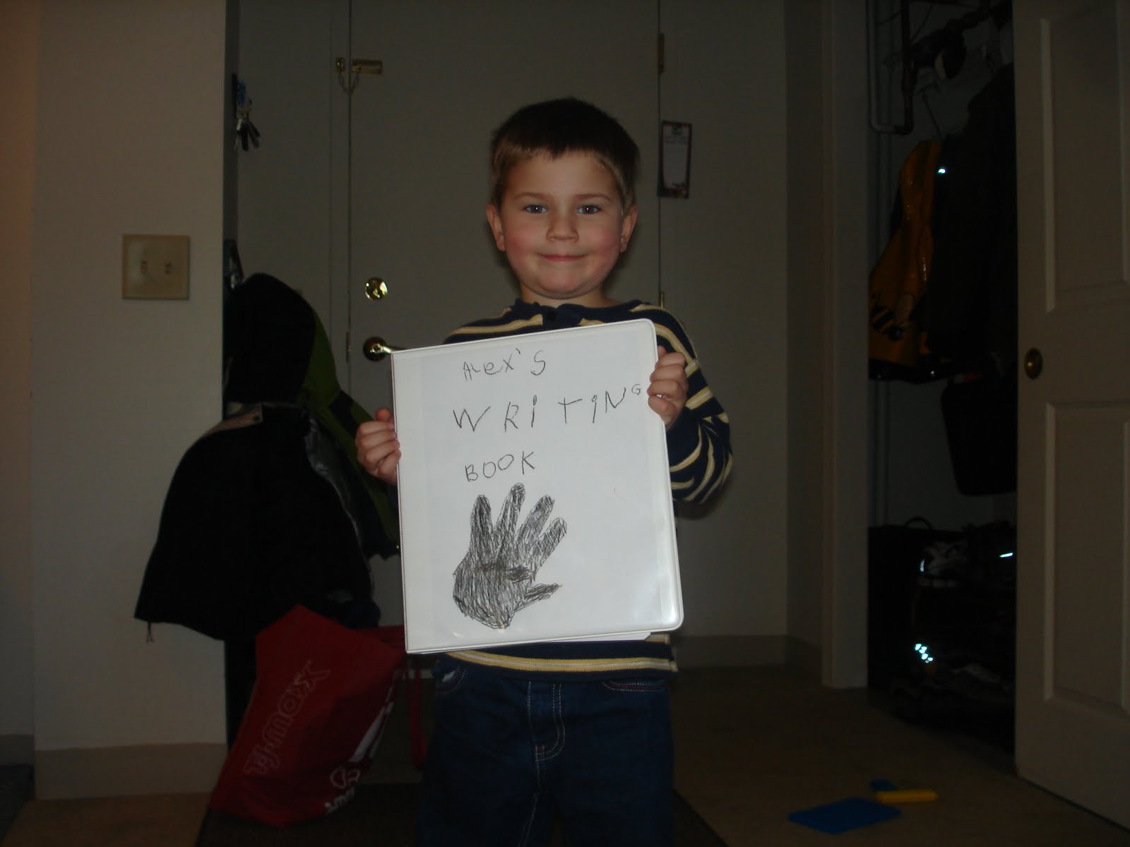Alex started a writing book in February. He gets to do about a page a day and has really improved. He just loves the school work and often begs for more.